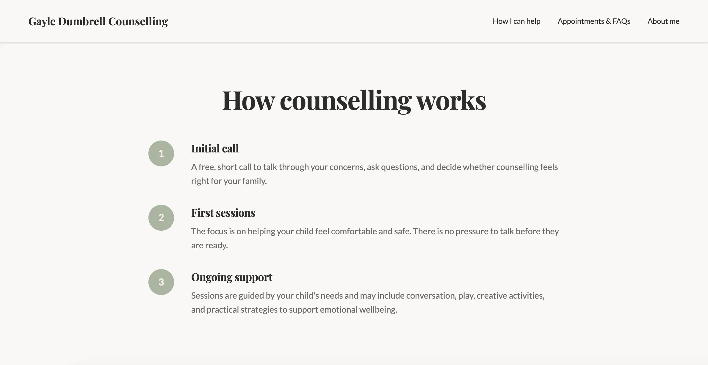 Her new business needed a digital presence that felt safe, calm and trustworthy; a place where children, families and teachers could seek support during difficult moments. It also needed to work quickly. Gayle was ready to take enquiries, but had no brand, no website and no secure way to manage information online.
